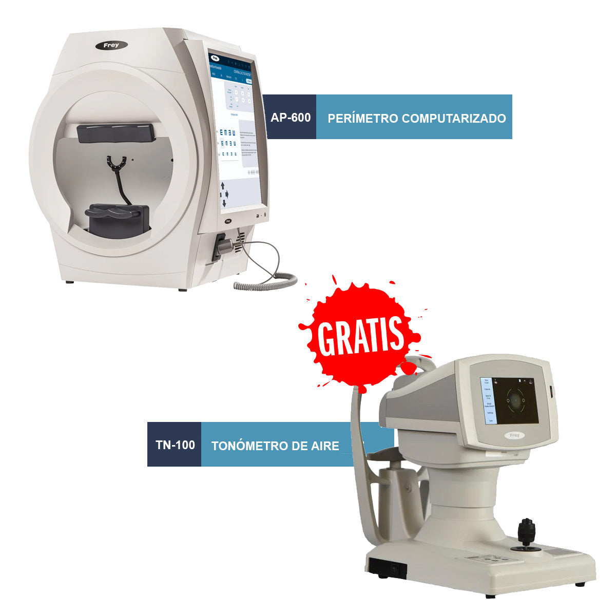 El Perímetro AP-600 cuenta con una PC incorporada junto con un monitor táctil integrado que controla la ejecución de la prueba y la operación del dispositivo, además de un botón de respuesta del paciente.