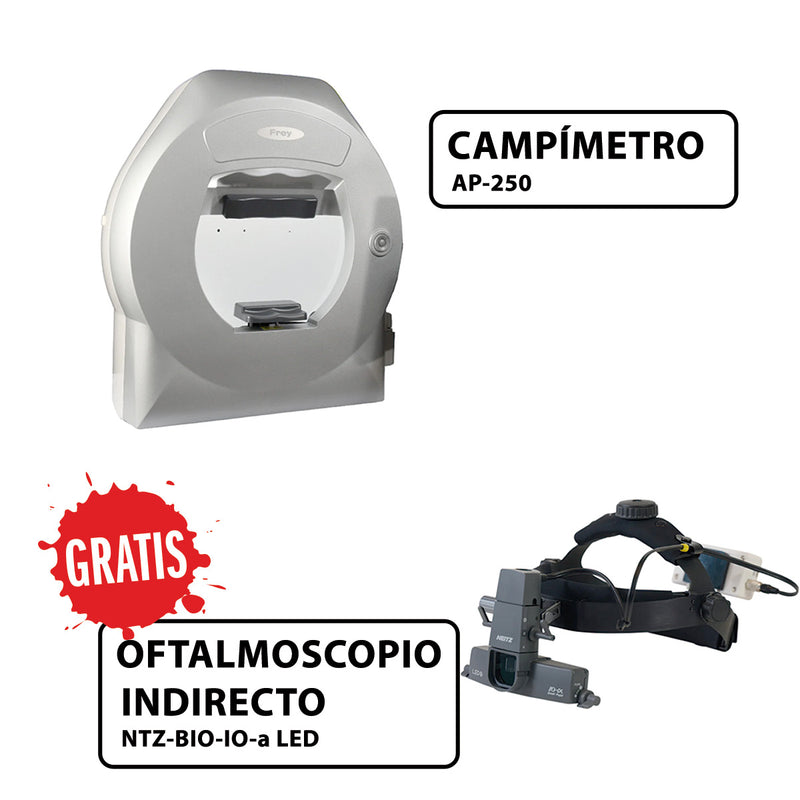 El analizador de campo visual AP-250 es un perímetro automatizado completamente funcional con proyección estática retroiluminada mediante LED, que ofrece una medición de campo completo. El AP-250 utiliza proyección de estímulo LED de color verde en tamaño III de Goldman. El software suministrado con el dispositivo ofrece una amplia gama de estrategias, campos y parámetros de prueba. El control de la fijación se realiza automáticamente utilizando la cámara incorporada o controlando la posición del punto ciego. El análisis de datos integrado incluye análisis de regresión y formatos estandarizados para presentar e imprimir los resultados de las pruebas. El perímetro Frey AP-250 se puede configurar fácilmente con cualquier computadora PC que ejecute el sistema operativo Windows.