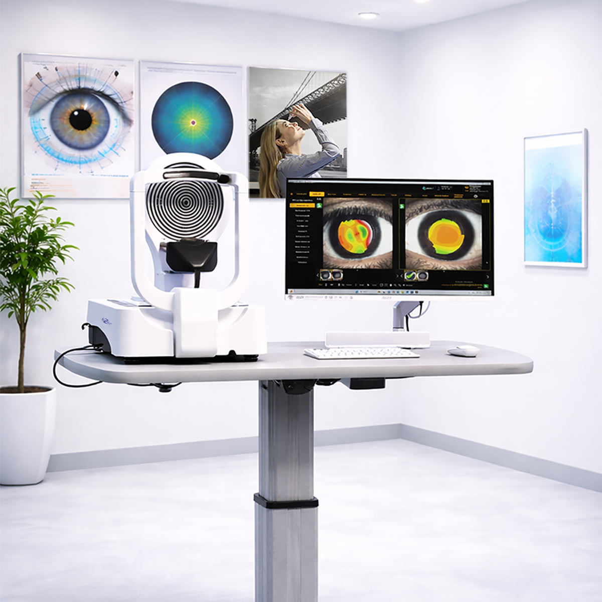 Al capturar mediciones detalladas de la curvatura, el sistema produce un mapa intuitivo codificado por colores donde cada color representa una potencia corneal diferente. Esto permite a los profesionales identificar rápidamente irregularidades, evaluar el impacto de las lentes de contacto en la córnea y optimizar la selección de lentes para lograr la máxima comodidad y rendimiento visual del paciente.